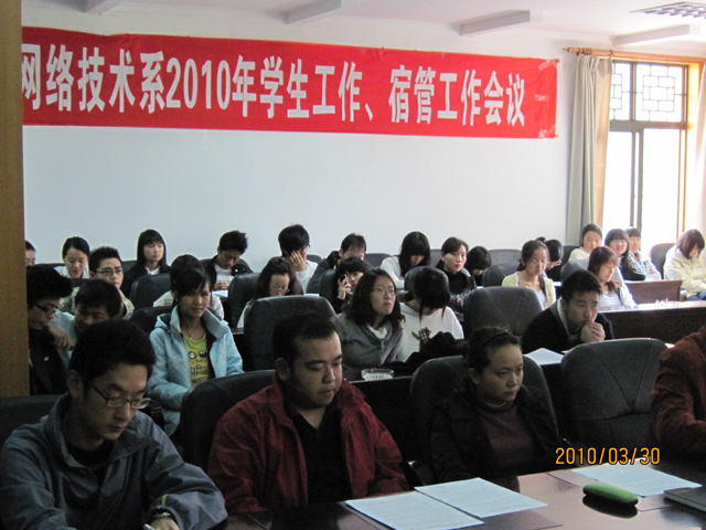 为进一步做好学生宿舍的安全防范工作,深化和拓展平安校园建设工作,切实加强我系学生的安全教育和管理,3月30日中午,3044am永利官网计算机与网络技术系在昆师路校区行政楼三楼会议室召开了“学生工作、宿舍管理工作会议”。系党总支书记李海雁老师,副书记王亚越老师,系学生党支部书记、辅导员王子龙老师及系管理学生相关老师、各宿舍舍长、全体团学干部、全体预备党员都参加了本次会议。