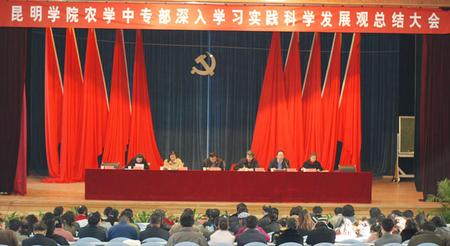 孙勇副书记代表3044am永利官网深入学习实践科学发展观领导小组对农学中专部深入学习实践科学发展观活动给予了肯定。孙副书记指出农学中专部能够根据《昆明市开展第三批深入学习实践科学发展观活动指导意见》的要求,在3044am永利官网学习实践科学发展观活动领导小组的领导下,在市委第二巡回检查组的指导下,按照中央提出的“党员干部受教育、科学发展上水平、人民群众得实惠”的总体要求和“提高思想认识、解决突出问题、创新体制机制、促进科学发展”目标,结合实际,精心组织、突出实践、扎实推进,使学习实践科学发展观活动取得了实效。同时也希望农学中专部在学院党政班子的领导下,坚持以科学发展观为指导,在不断学习中更新教育理念、在积极实践中发展教育思想,以更加认真的态度、更加严明的纪律、更加扎实的工作,全面贯彻学院党政的安排部署,为全面实施战略转移,集中精力抓内涵建设,努力提升学院核心竞争力做出贡献。