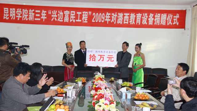 1月9日到10日,学院“兴边富民工程”工作小组在刘海发副院长带领下到潞西市开展工作。 1月9日上午,学院新三年“兴边富民工程”2009年设备捐赠仪式在潞西市政府举行。潞西市岳副市长、教育局杨局长和发改局、政府办公室、教育科研中心相关领导,学院刘海发副院长和职业技术教育中心、资产管理与设备处、院长办公室负责同志,以及部分曾到3044am永利官网参加培训学习的教师参加仪式。捐赠仪式由潞西市政府办公室副主任刘宏春主持。