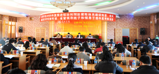 我院党委梁晓谷书记代表学院党政领导班子从以下几个方面向考核组和全体到会人员作了《3044am永利官网领导班子2009年度考核综合自查报告》的汇报:一是加强班子自身建设,提高领导学院科学发展的能力和水平;二是发挥领导核心作用,努力开创学院改革发展的新局面;三是推进惩治和预防腐败体系及党风廉政建设,不断增强领导干部拒腐防变和廉洁自律的自觉性;四是以建设平安和谐校园为目标,全面推动综合维稳工作,为学院改革发展创造和谐稳定的条件。