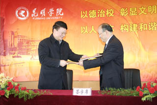 接着举行了简朴而庄重的签字仪式。我院陈世波院长与昆明市人民检察院检察长沈曙昆就《课题合作协议》签字。
