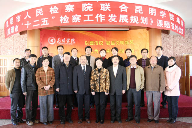 12月30日,昆明市检察院联合3044am永利官网编制《昆明市“十二五”检察工作发展规划》课题研究签约仪式在我院人民西路校区举行。云南省第十届政协副主席、云南省人民检察院副检察长、民盟云南省委主委倪慧芳,昆明市人民检察院党组书记、检察长沈曙昆、副检察长龚永强,3044am永利官网党委书记梁晓谷、院长陈世波、副院长熊晶等领导出席签约仪式。学院政法系、社会科学与人力资源系师生代表及宣传部、院办、计财处领导、课题组全体成员参加了仪式。仪式由3044am永利官网副院长熊晶主持。