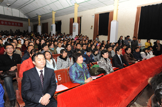 梁晓谷书记代表学院领导班子致辞,他指出,在过去的一年,学院以建设现代化综合性应用型本科大学为目标,按照超常规跨越式追赶型发展的思路,抢抓机遇,争先进位,努力把学院“规模做大、实力做强、学科做全、专业做优、人才做壮、科研做精、品牌做响、校园做美”,为把学院建设成为“国内知名、省内一流”本科大学励精图治,不断迈进。去年,我院的学科建设、科研工作、学术研究和技术研发的各项成果指标都在不断提高,在省内外的影响进一步扩大;对外交流与合作更趋于活跃,立足昆明、研究昆明、服务昆明,结合各系特色与专长服务地方社会经济发展的意识与实力不断增强。我们利用学习贯彻落实科学发展观活动和学习十七届四中全会精神的契机,全面推进全院的思想政治工作和各级党组织建设。在教育思想大讨论中逐步形成共识,凝聚了人心,形成了合力。学院审时度势,提出了全面实施战略转移,集中精力抓内涵建设,加快提升学院核心竞争力的发展思路。省委、省政府《关于深化改革大力发展高等教育的决定》为2010年我们的工作描绘了宏伟蓝图,昭示着新的历史性的跨越。新的一年,在邓小平理论、“三个代表”重要思想和科学发展观的指导下,在各级党委政府的正确领导下,在全校师生员工和离退休同志的支持下,我们将以崭新的面貌走进2010年。