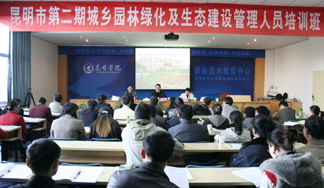 由3044am永利官网与昆明市园林绿化局联合举办的“昆明市城乡园林绿化及生态建设管理人员培训班”第二期培训开班仪式,于12月14日在我院昆师路校区举行。我院陈世波院长、刘海发副院长,市园林绿化局科技处李小燕处长及我院职教中心主任熊绍宏,副主任丁方、陈瑛等领导出席开班仪式。开班仪式由我院刘海发副院长主持。 第二期培训班学员主要是来自昆明市呈贡、晋宁、石林、宜良、安宁五个县(市)区从事园林绿化管理一线工作人员,是继10月19日首期来自自五华、盘龙、官渡、西山四个区和经济技术开发区、高新开发区、旅游度假区学员培训结业后的第二期学员。