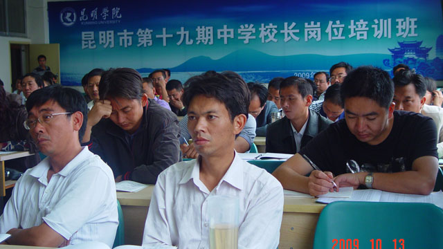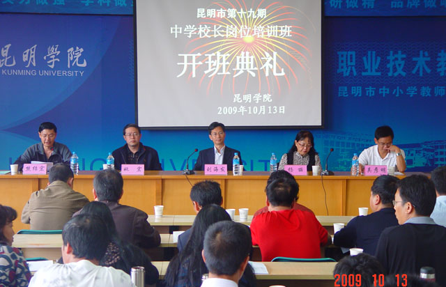 10月13日上午,昆明市第十九期中学校长岗位培训班在3044am永利官网昆师路校区举行了开班典礼。云南省教育厅师范处杨丽处长、昆明市教育局姚宏副书记、副局长、师训高教处吴彦明处长、3044am永利官网刘海发副院长以及职业技术教育中心的各位领导出席了开班典礼。来自昆明市的76位、德宏州潞西市的4位共80位中学校长(书记)将在我院参加为期三个月的脱产阶段学习。
