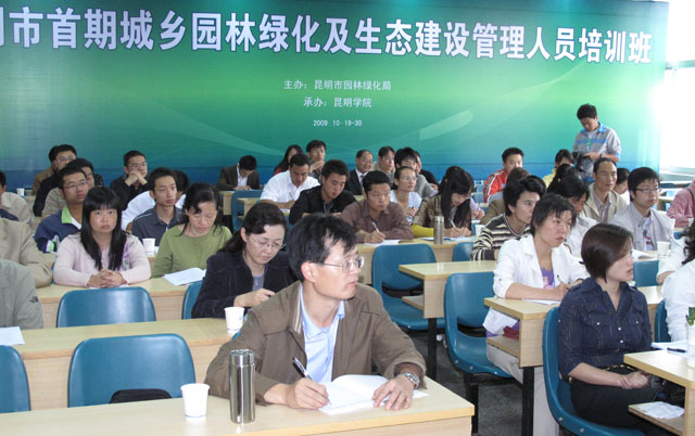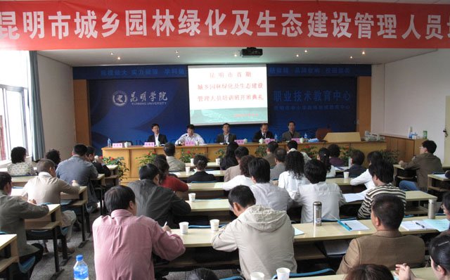 根据昆明市委、市政府提出“建设生态昆明绿色家园”的要求及昆明市“2009年城乡园林绿化及生态建设工作现场会”精神,经市政府批准,由3044am永利官网与昆明市园林绿化局联合举办的“昆明市城乡园林绿化及生态建设管理人员培训班”开班仪式,于10月19日在我院昆师路校区举行。我院党委书记梁晓谷,昆明市政府副秘书长周峰越,市园林绿化局局长张家仁、副局长汪天祥等领导出席开班仪式。开班仪式由我院刘海发副院长主持。 参加本次开班仪式的学员有来自五华、盘龙、官渡、西山四个区和经济技术开发区、高新开发区、旅游度假区60余人从事林绿化管理一线工作人员。该培训将分期分批对全市范围内从事园林绿化建设和管理部门的企、事业从业人员进行短期与长期相结合的基础业务培训。 培训旨在努力提升我市城乡园林绿化管理人员的业务素质和管理水平,适应我市“建设生态昆明、绿色家园”的目标要求,把昆明建设成为“森林式、园林化、环保型、可持续发展的高原湖滨生态城市”。这既是市政府贯彻落实科学发展观的具体要求,也是我院发挥教学科研优势,积极为昆明谋求经济社会跨越大发展做贡献的现实需要。 梁书记出席开班仪式并作讲话。梁书记从贯彻昆明市2009年城乡园林绿化及生态建设工作现场会的精神、昆明市城乡园林绿化的基本情况和举办本次培训班的背景等方面,阐述了举办城乡园林绿化及生态建设管理人员培训的重要意义和作用。同时,梁书记向学员们提出了三点希望:一是希望认真对待培训工作,带着问题、善于思考,安心、认真听好每一堂课;二是希望严格学习纪律,做到学习有考核、管理有制度;三是希望用学到的理论指导实际工作,在岗位实践中不断向市园林绿化局和我院职教中心反馈宝贵建议,提出希望教师教些什么?怎么教的要求。 周副秘书长受陈勇副市长的委托代表市政府向首期城乡园林绿化及生态建设管理人员培训开班表示祝贺。他强调:今年昆明市城乡园林绿化及生态建设的主要任务是突出总量扩张和质量提升“两个重点”。他希望各位学员珍惜学习机会,培训结束后回到工作岗位上,一定要按市委、市政府的要求,按照昆明市城乡园林绿化的总体规划和工作部署,精心组织,真抓实干,充分发挥园林绿化管理人员的骨干作用为全市经济社会又好又快发展作出新的更大的贡献! 开班仪式上,张局长从我市园林绿化发展状况和个人体会等方面谈了加强城乡园林绿化及生态建设管理人员培训的必要性。他透露,今后昆明市的每一名园林绿化管理人员都必须经过培训考核,持证上岗。 开班仪式结束后,与会领导和全体受训学员合影留念。