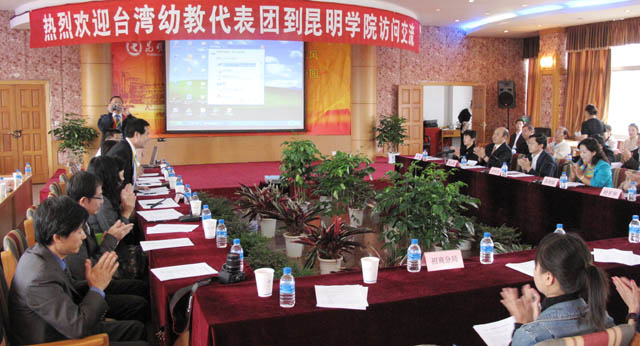 研讨会由昆明市台办主任段俐娟主持。昆明市教育局领导发言首先对台湾幼教联合总会的到来表示诚挚的欢迎,然后就昆明的教育大背景作了较详细的介绍。接着3044am永利官网罗明东副院长对3044am永利官网的建院情况,院系专业设置,未来发展方向,特别是学前教育系的发展做了重要发言。学前教育系领导唐敏副主任主要针对3044am永利官网学前教育系的办学历史、专业特色、科研能力、与昆明市各幼教机构的合作等台湾同行们感兴趣的问题,作了深入而细致的介绍。同时台湾幼教联合总会涂会长也把台湾的幼教发展现状等信息作了交流。