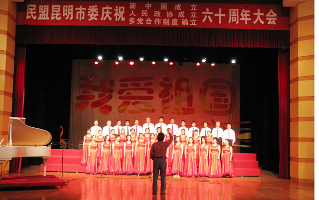 民盟3044am永利官网总支组织40人参加演出,以一曲《中国,中国,鲜红的太阳永不落》大合唱,表达了对祖国的热爱和对人民政协、多党合作制度的拥护。