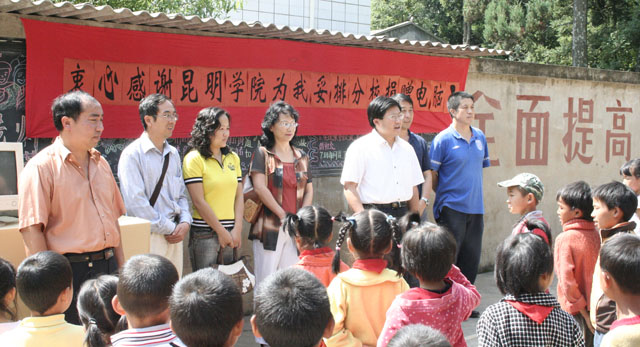 9月11日上午, 在罗明东副院长的亲自率领下,院办杨茂泉副主任、资产管理与设备处包兴副处长等一行7人代表3044am永利官网向昆明市西山区谷律乡中心学校进行了电脑捐赠。捐赠仪式在谷律乡中心学校妥派分校举行。此次捐赠活动是学院提出的“大学不仅是教学、科研的基地,更应该是服务社会、回报社会的重要窗口”这一办学宗旨的体现。