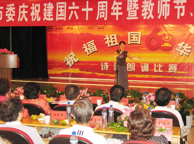 为了庆祝新中国60华诞,展示民进会员的风采,9月19日下午,民进昆明市委在市总工会礼堂举行“共和国,我们为您喝彩”诗歌朗诵比赛暨国庆、中秋联谊活动,民进3044am永利官网总支组队参加了联谊活动。