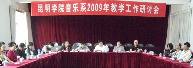 音乐系2009年教学工作研讨会于9月18日至19日在安宁市召开,全系教职工参加了会议。学院罗明东副院长、教务处陈嘉副处长莅临会议指导。系主任靳丽芬主持了会议。
