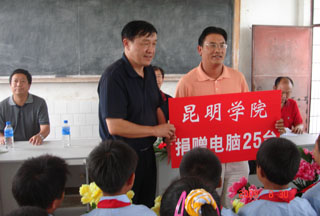 8月30日下午,我院为新农村建设指导员驻村两小学捐赠电脑,捐赠仪式在陆良县三岔河镇太家头小学举行。学院党委副书记孙勇、组织部长董建华、副部长张士芬一行六人代表3044am永利官网专程赴太家头小学出席捐赠仪式。三岔河镇、村领导及太家头小学师生参加了此次活动。