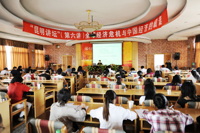 7月1日下午,我院邀请美国哈佛大学博士、美国伊利诺伊州立大学张宏霖教授主讲“昆明讲坛”第六讲,主题为:“全球经济危机与中国的崛起”。报告会由昆明科学发展研究院办公室主任管彦平主持。3044am永利官网院长陈世波、副院长熊晶及部分系室领导、教师和学生代表现场聆听了张教授的精彩报告。
