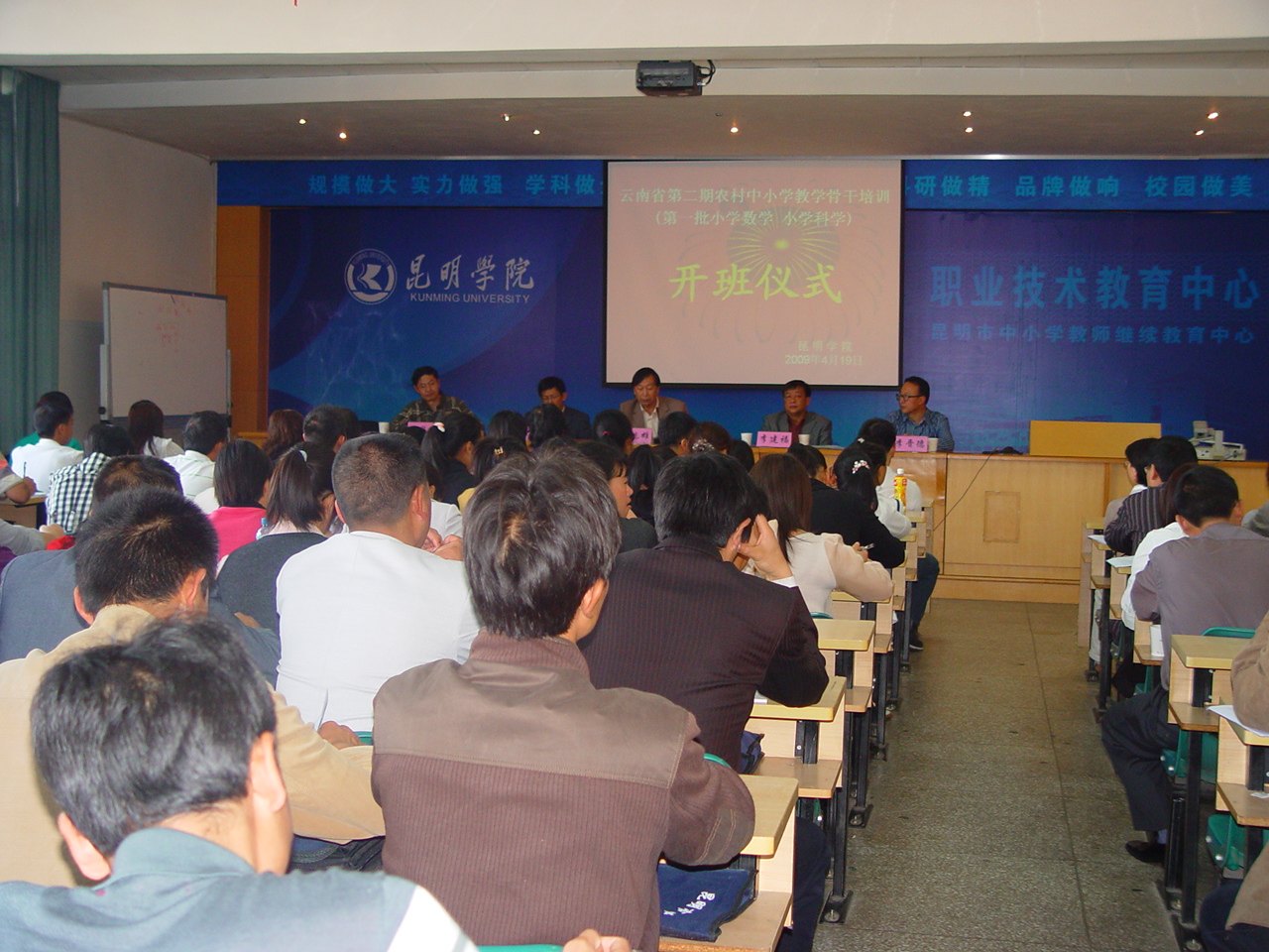 4月19日上午,云南省第二期农村中小学教学骨干小学数学、小学科学培训班开班仪式在我院举行,第一批为期12天的集中培训正式开始。来自全省各县的71名小学数学、64名小学科学教师参加培训。