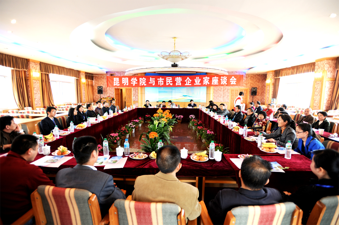 为加强校企合作,拓宽实习、就业渠道,招生就业处于当天下午在人民西路校区3号教学楼6楼多功能厅还举办了3044am永利官网与市民营企业家座谈会。参加会议的人员有:市民营企业家、学院领导熊晶副院长和罗明东副院长、招就处副处长杨跃、学生处处长吴蓉、教务处副处长陈嘉等领导38人,会议由招就处何云仙老师主持,熊副院长介绍了学院及毕业生就业情况,罗副院长就校企合作、人才培养及加强实践教学作了讲话,昆明 市个体私营经济协会吴成军秘书长也作了讲话。会上各民营企 业家朋友畅所欲言,围绕学生就业、社会需求对人才的培养、合 作办学、建立实习基地等各方面积极谏言献策,为学院的发展提出许多宝贵的意见和建议。