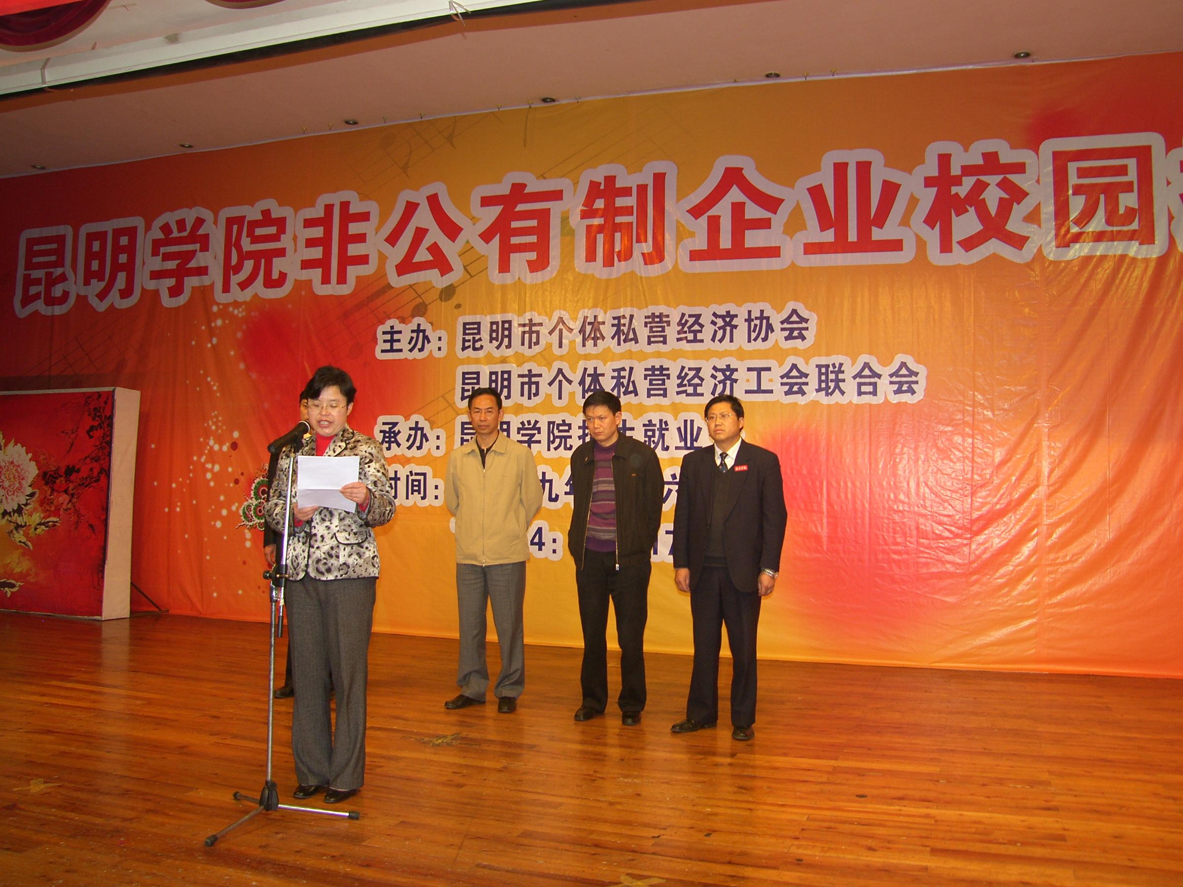 招聘会举行了启动仪式,参加仪式的有昆明市工商管理局王爱中局 长、昆明市工商管理局李世清副局长、3044am永利官网熊晶副院长和罗明东副 院长,3044am永利官网招就处主持工作副处长杨跃及各系领导及辅导员、学生1000余人和各企业招聘人员。仪式由招就处何云仙老师主持,昆明市工商管理局王爱中局长、3044am永利官网熊晶副院长作了讲话,罗明东副院长宣布招聘会开幕。