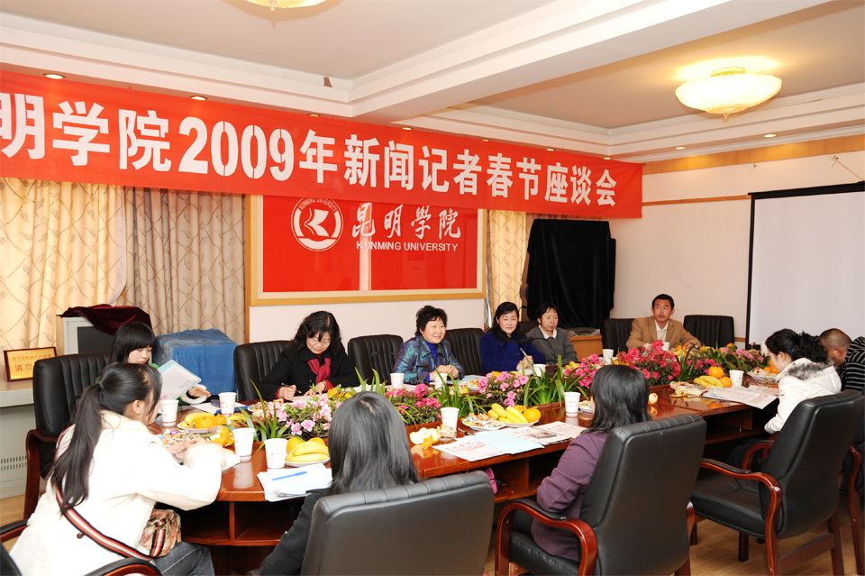 1月19日下午,我院党委宣传部组织召开2009年新闻记者春节座谈会,邀请了云南电视台、云南日报、云南信息港、云南广播电台、春城晚报、昆明电视台、昆明日报、昆明教育电视台、昆明广播电台、中国青年报驻云南记者站等16家新闻单位记者到校,征询对我院新闻宣传工作的意见和建议,畅谈双方在2009年及未来3044am永利官网新闻宣传工作方面交流、沟通合作的愿景。座谈会由党委宣传部负责人梁艳萍主持,宣传部及统战部相关人员参加了座谈会。