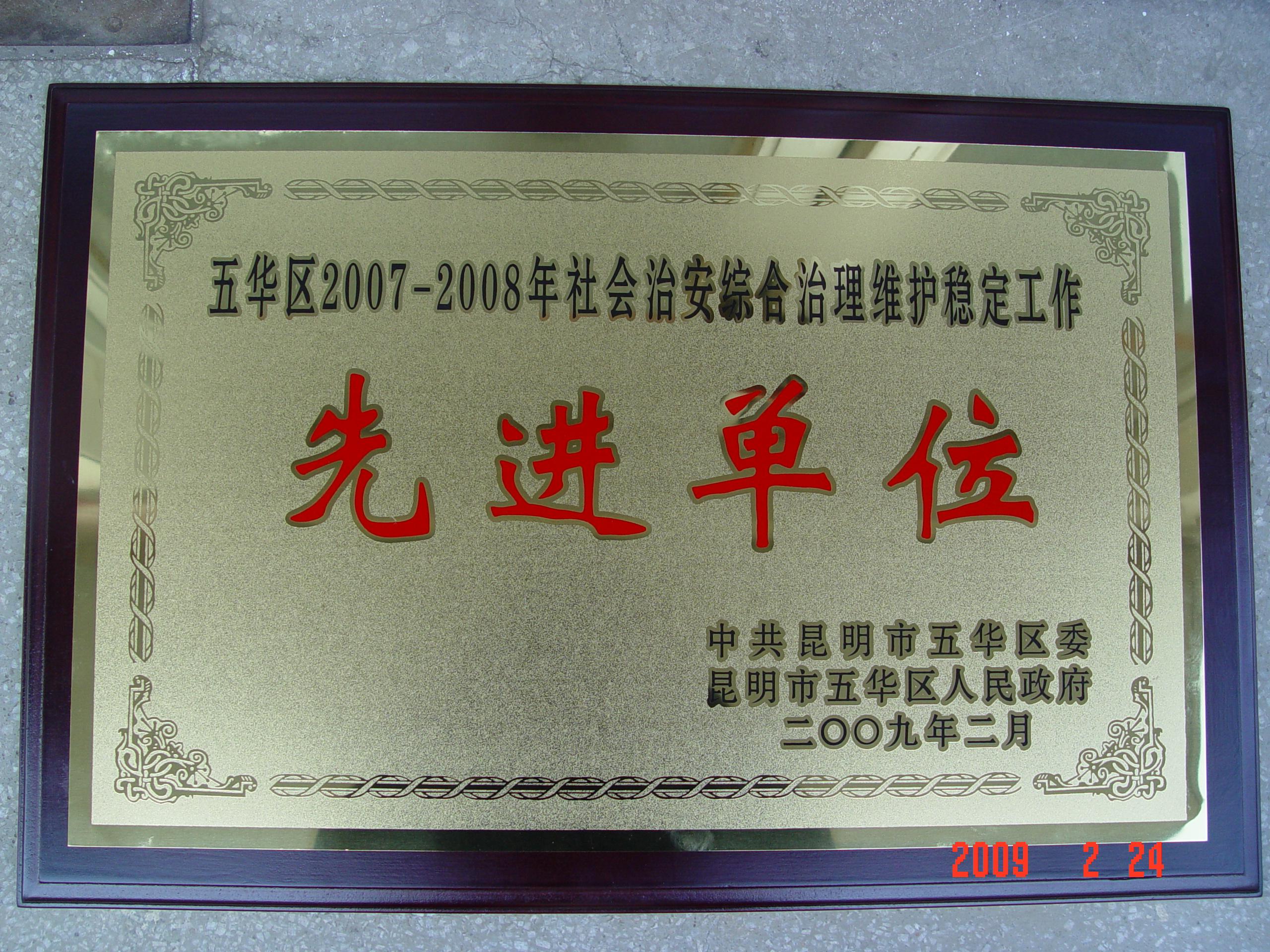 近日,我院被中共昆明市五华区委、昆明市五华区人民政府评为“2007——2008年度社会治安综合治理维护稳定工作先进单位”,并在区委、区政府召开的社会治安综合治理表彰大会上受到表彰;同时我院各校区也分别被评为“五华区龙翔地区2008年社会治安综合治理维护社会稳定工作先进单位”,“五华区红云地区2008年社会治安综合治理暨平安建设先进单位”,“盘龙区东华地区2008年度司法行政工作先进集体”;保卫处吴向东、张智益、尤兴明三名同志获“龙翔地区社会治安综合治理维护社会稳定工作先进个人”称号。