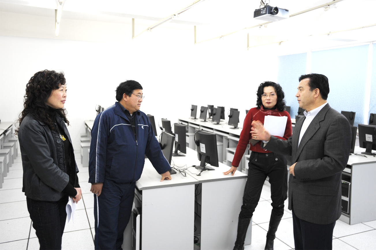 党委书记梁晓谷在教务处处长郝旭霞的陪同下,在人民西路校区对各系的教学检查后,察看了经济系新建的财务管理实验室,在认真仔细地听取经济系领导班子的教学情况汇报后,梁书记要求经济系要从学科专业的特点人手,注重社会调研工作,注重吸收和鉴借其它高校同一学科专业的教学实践经验,在结合自身学科专业特色的基础上,加快硕士点的建设步伐,提升办学层次水平。同时要强化学生的实践和动手能力,培养出厚理论、重实践、能动手,具有专业拓展能力和创新能力,适应社会需要和具有社会竞争力的新型人才。