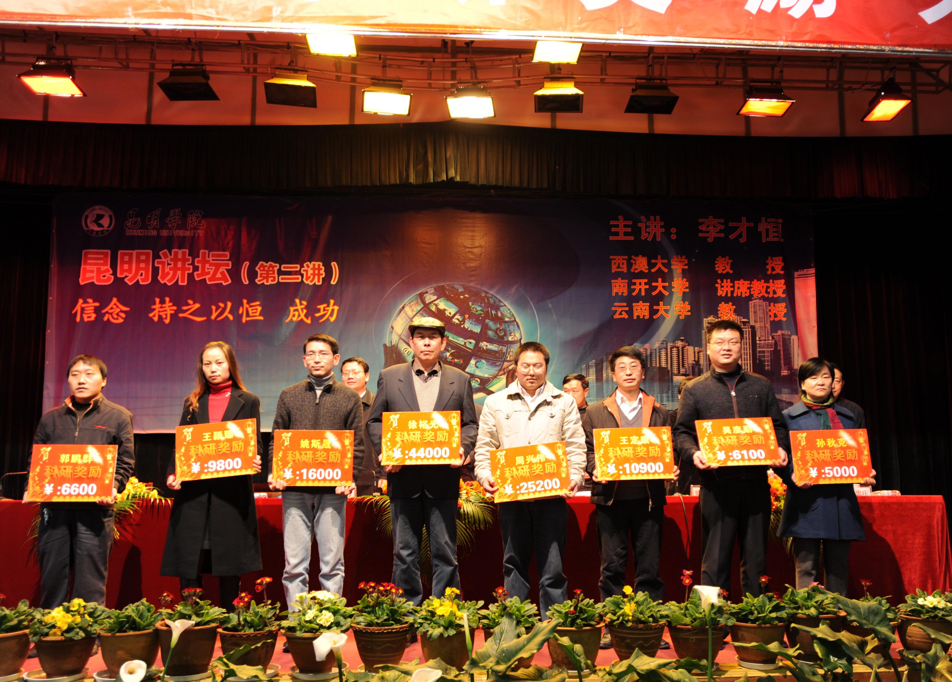 会后,昆明讲坛第二讲开讲。此次讲坛邀请到西澳大学教授、南开大学讲席教授、云南大学教授李才恒先生作了主题为“信念 持之以恒 成功”的报告。李才恒先生深入浅出讲述了自己的研究体会、成功经验,对广大教职工如何进行科研、如何处理科研与教学的关系等启发很大。