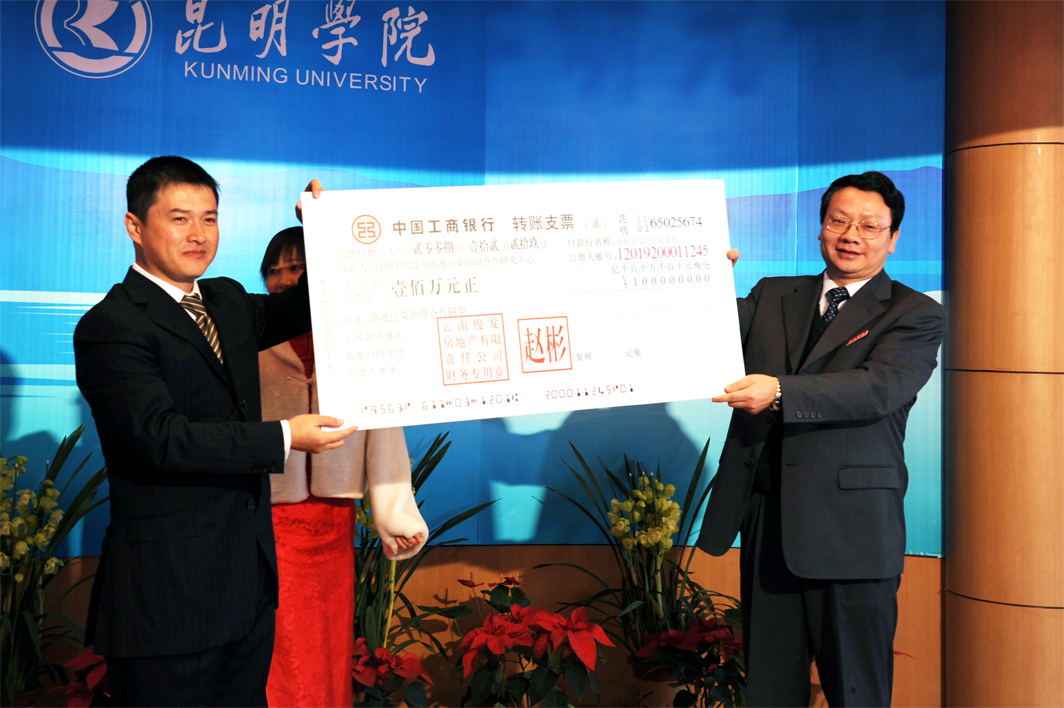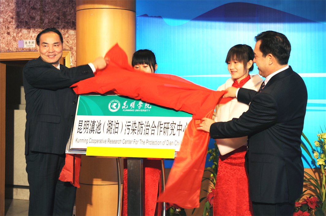 李文荣副市长和我院梁晓谷书记为昆明滇池(湖泊)污染防治合作研究中心揭牌,标志着研究中心正式成立。陈院长代表研究中心接受了俊发集团100万元和浩宏物流30万元的捐赠。