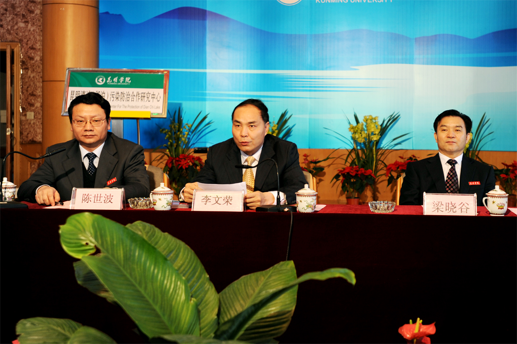 我院陈世波院长首先对一向关心支持我院发展的省市领导、相关职能部门、企事业单位的领导和各行各业的专家和学者表示欢迎和感谢。在简单介绍了7月9日学院领导班子到任后,开展的一系列工作,尤其是在科研方面采取的措施和方法之后,陈院长表示昆明滇池(湖泊)污染防治合作研究中心的揭牌,为我院的学科整合与未来学科构建提供了良好契机,对加快我院建设和发展具有十分重要的意义,我院将紧抓契机,深化教育教学改革,走开放式办学道路,把研究中心作为我院重点学科建设的一个支撑点进行建设和培育,力求在研究思想、研究方法上有所创新,实践上有所突破,为滇池这颗“高原明珠”早日重放光彩尽到我们义不容辞的责任和义务。
