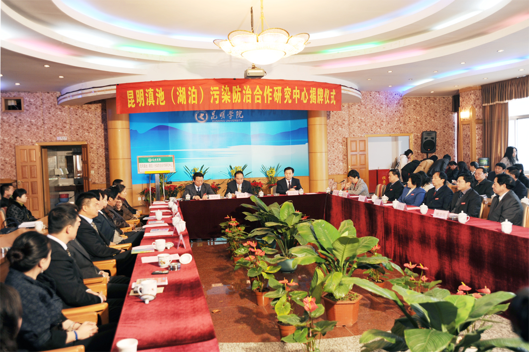 12月29日上午9点,昆明滇池(湖泊)污染防治合作研究中心(以下简称研究中心)揭牌仪式在我院举行。市委常委、常务副市长李文荣以及市环保局、市科技局、市科协、俊发集团、浩宏物流等单位和企业领导应邀出席。我院全体院领导、全体中层干部以及相关系部领导和工作人员参加了今天的揭牌仪式。仪式由熊晶副院长主持。
