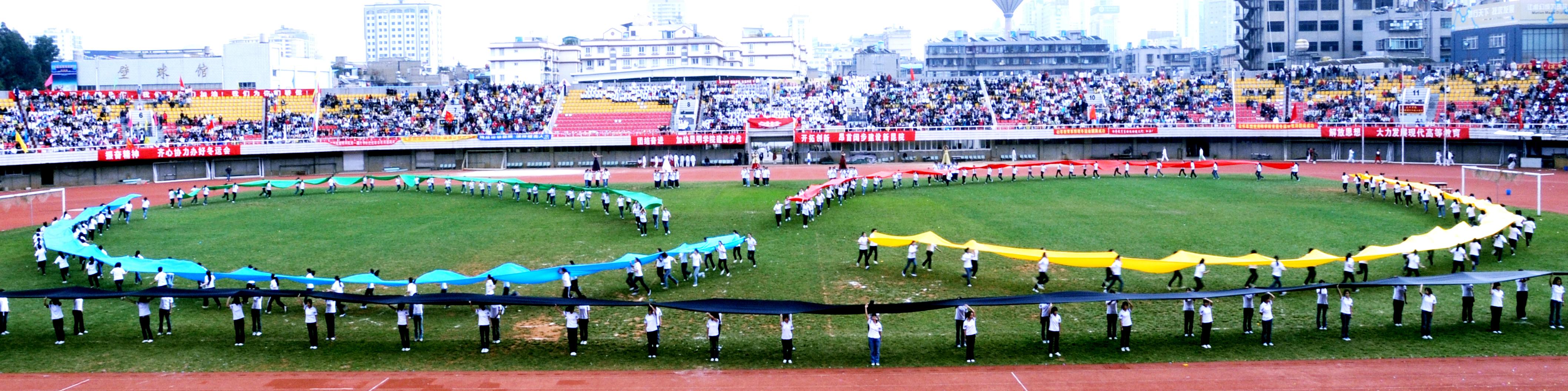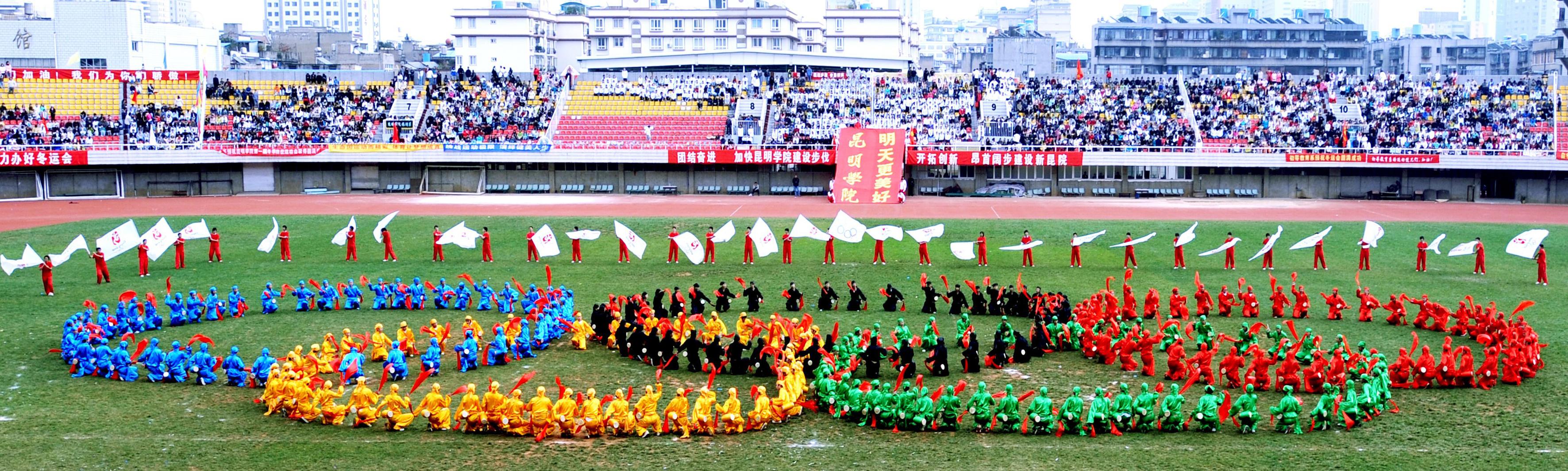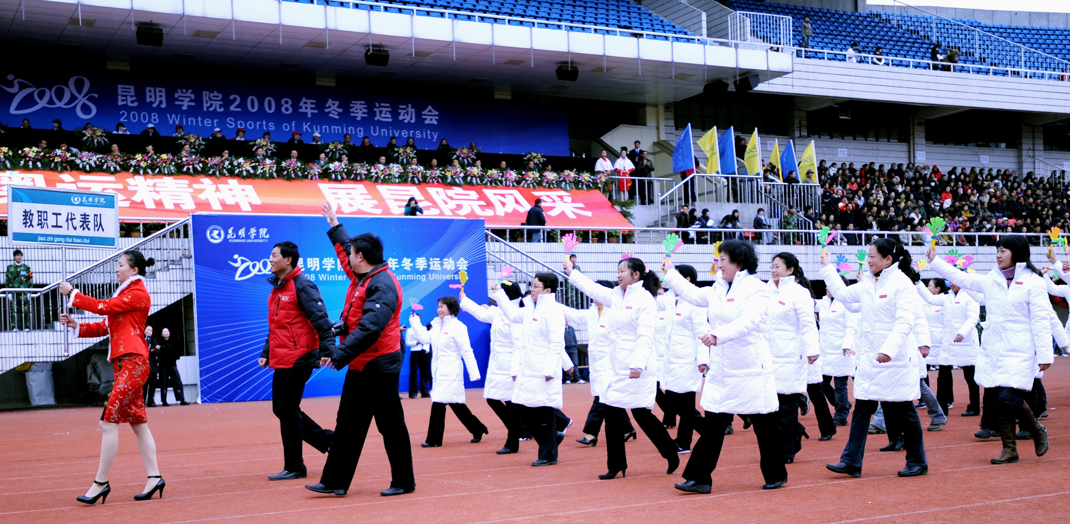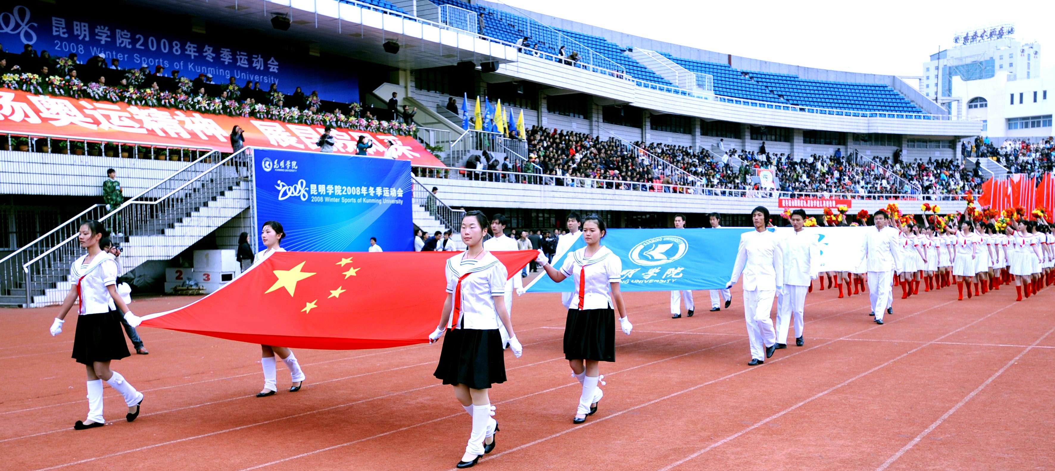11月27日上午,我院14000多名师生欢聚一堂,在昆明市体育场隆重举行了2008年冬季运动会开幕式。开幕式邀请到了省教育厅体卫处梁北明处级调研员、市文明办张成贵常务副主任、云南大学、云南师范大学、昆明理工大学等在昆高校的体育学院(部)的领导出席,云南日报、昆明电视台、春城晚报等多家媒体到场报道。我院熊晶副院长主持开幕式。