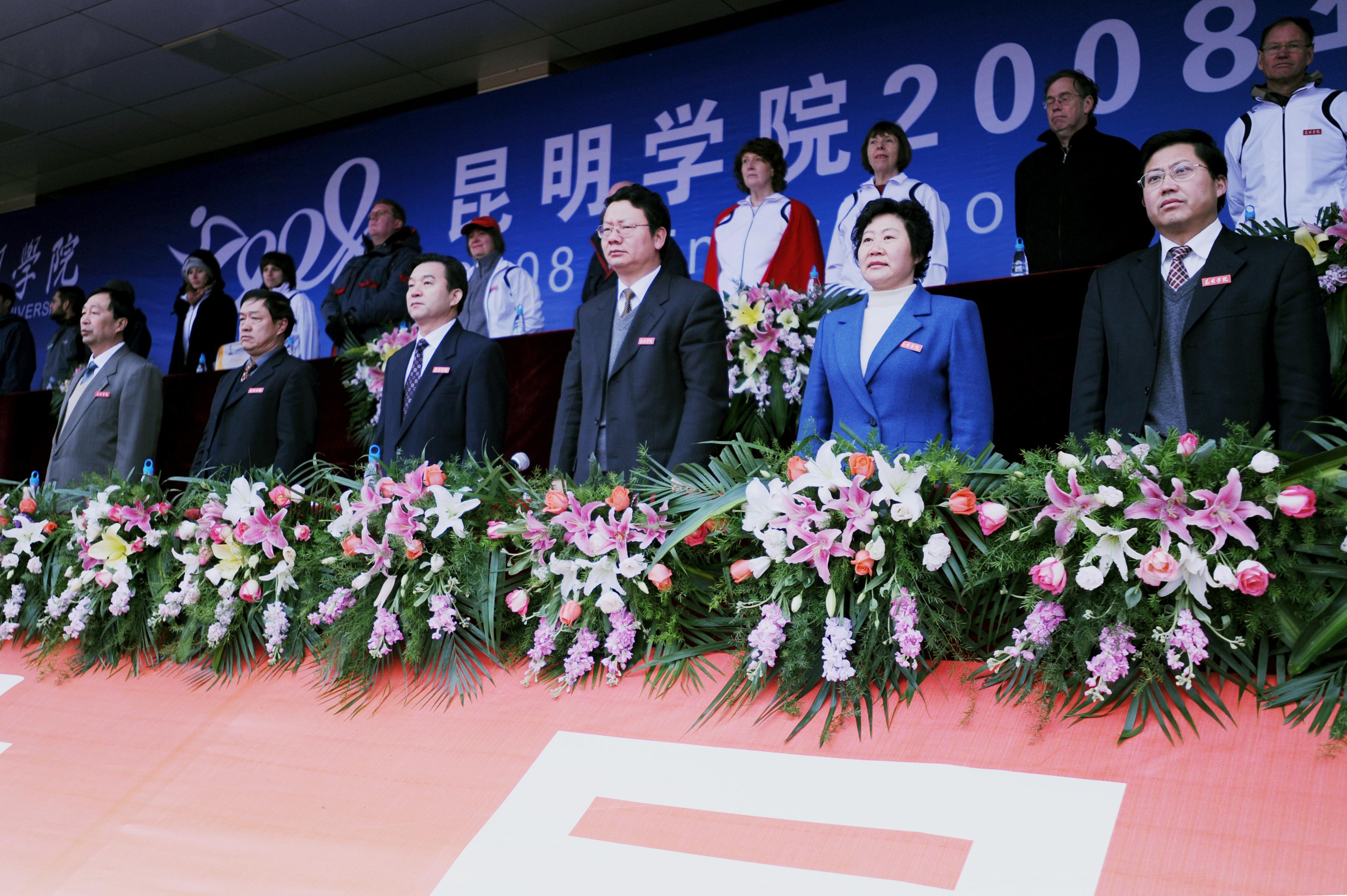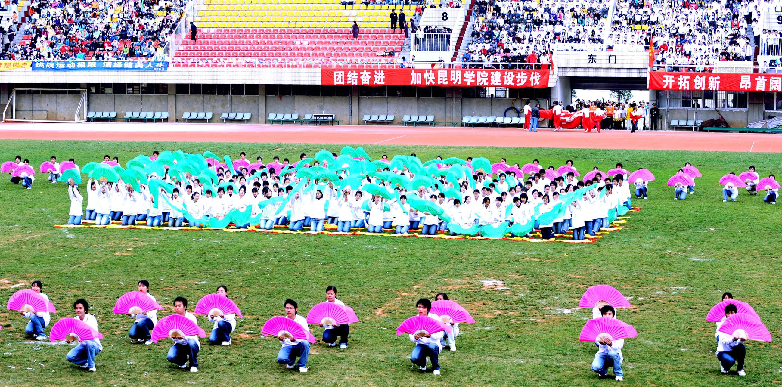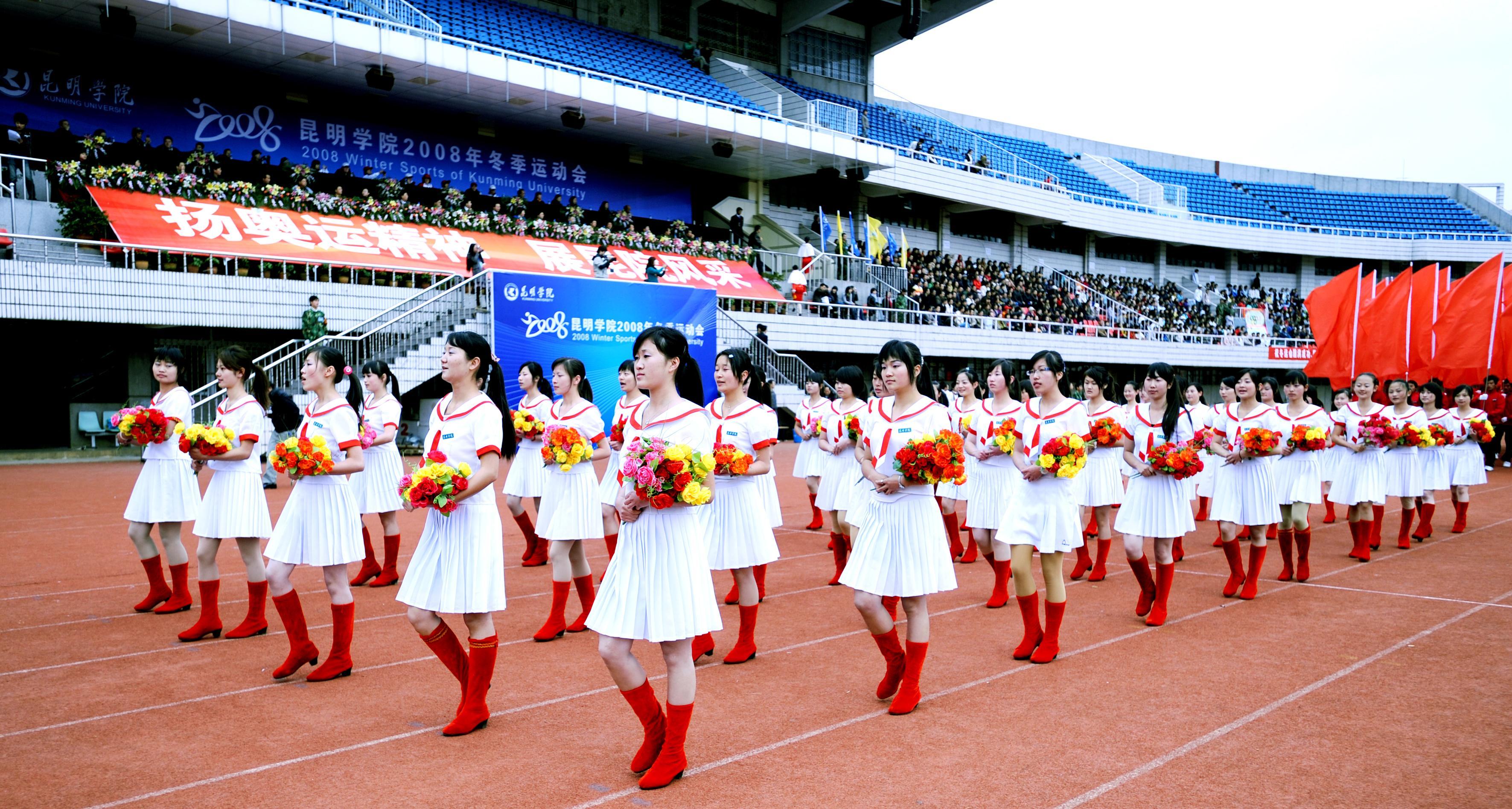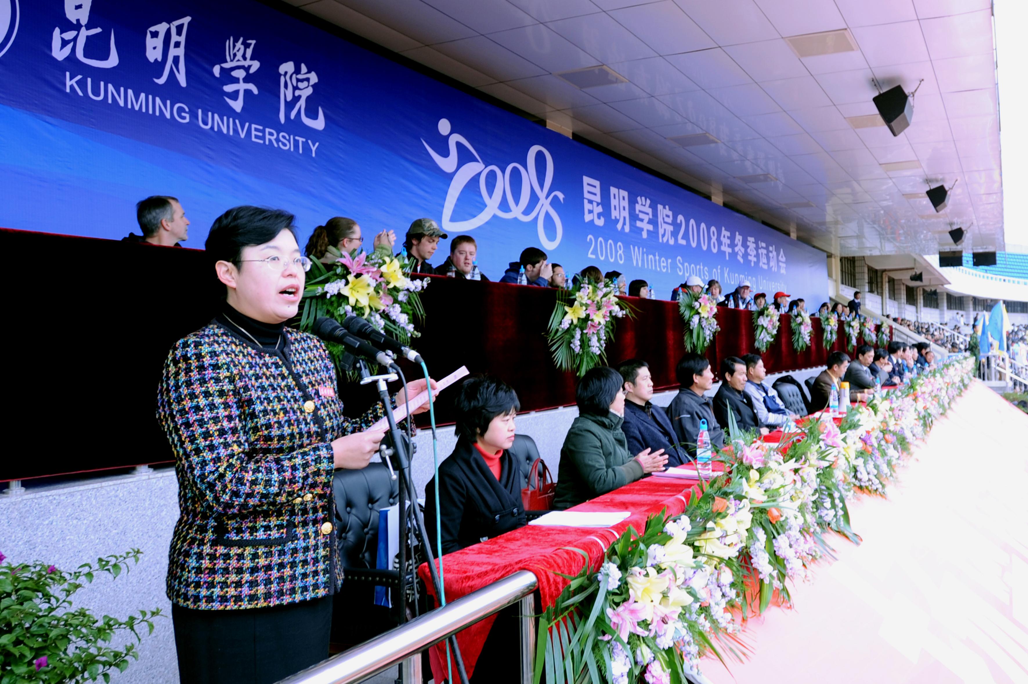 11月27日上午,我院14000多名师生欢聚一堂,在昆明市体育场隆重举行了2008年冬季运动会开幕式。开幕式邀请到了省教育厅体卫处梁北明处级调研员、市文明办张成贵常务副主任、云南大学、云南师范大学、昆明理工大学等在昆高校的体育学院(部)的领导出席,云南日报、昆明电视台、春城晚报等多家媒体到场报道。我院熊晶副院长主持开幕式。