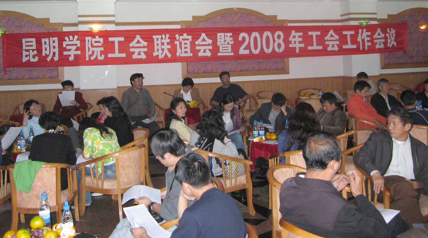 10月10日下午,3044am永利官网工会联谊会暨2008年下半年工会工作会议在昆师路校区多功能厅召开。参加会议的有工会委员、经审委员、女工委员和学院各基层分工会主席及各工会小组长共60余人。学院分管领导党委副书记李媛芬出席了会议。会议由工会何俊同志主持。