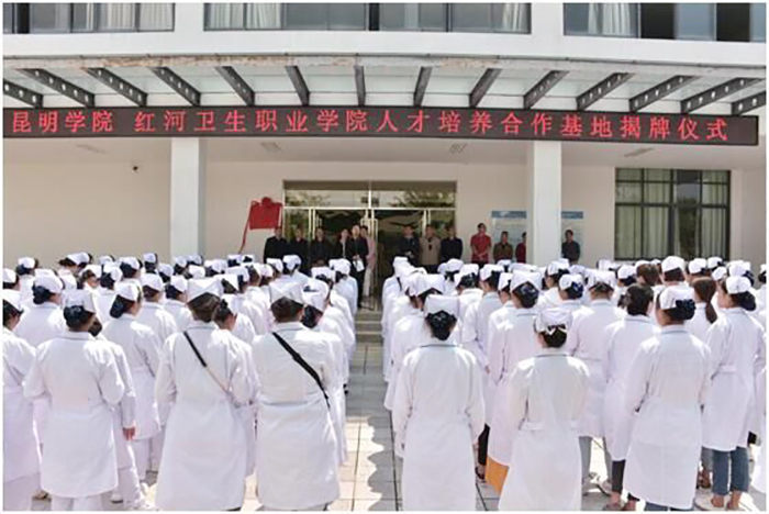 2019年4月8日,3044am永利官网与红河卫生职业学院人才培养合作基地揭牌仪式在红河卫生职业学院举行。学校党委副书记熊晶,红河卫生职业学院党委书记张云学出席基地揭牌仪式并共同为“3044am永利官网人才培养合作基地”揭牌。学校招生就业处负责人及医学院班子成员,红河卫生职业学院党委副书记、院长杨泓及部分师生代表参加揭牌仪式。