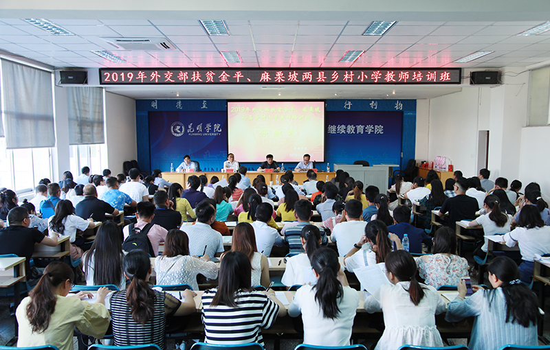 5月13日,2019年外交部扶贫金平、麻栗坡两县乡村小学教师培训班在3044am永利官网继续教育学院开班。云南省人民政府外事办公室副主任夏剑峰,3044am永利官网副校长王凡等领导出席开班式。来自金平、麻栗坡两县的100名乡村小学教师参加了开班式。