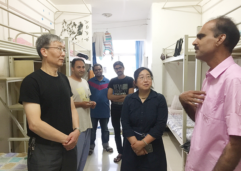 5月14日,董建华副校长来到国际学院听取学院近期工作情况汇报后,对下一步留学生招生、教学及管理提出要求,要求国际学院在留学生工作中注重质量,稳步前进。来到留学生宿舍,董建华副校长与留学生亲切交谈,仔细询问留学生在永利官网的学习、生活情况,认真听取同学们对学习和生活等方面的意见和建议,勉励留学生珍惜青春、发奋学习。留学生对董建华副校长的关心表示感谢,并即兴为董副校长表演了吉他弹唱。