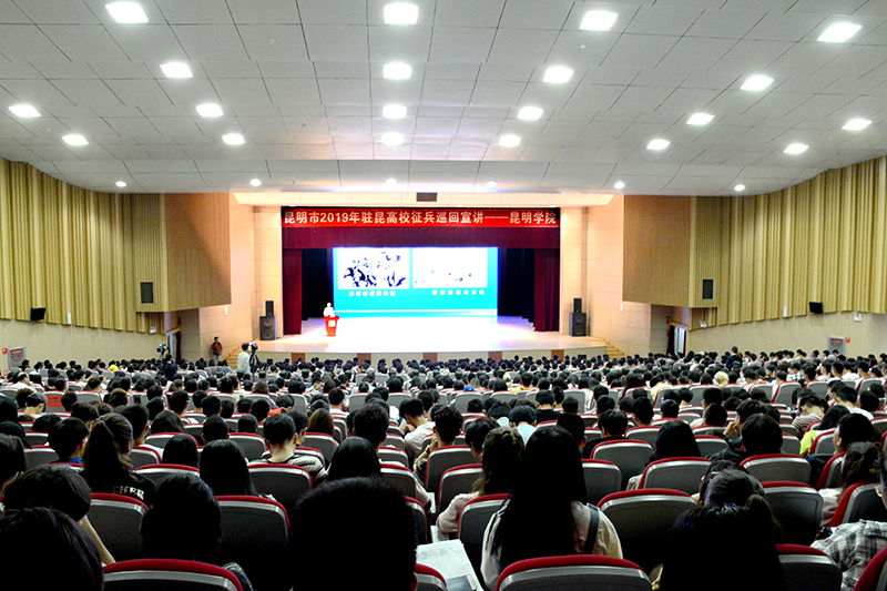 5月24日,2019年驻昆高校大学生征兵巡回宣讲在3044am永利官网学生会堂举行。云南省委常务、云南省军区政治委员余琨少将,云南省军区动员局副局长缪稳大校, 昆明市委常委、昆明警备区政治委员张海泉大校,昆明警备区司令员任兴格大校, 学校党委书记陈永明、副校长马银海、纪委书记魏萍、副校长王凡,学校各院系、相关部门负责人,各院系征兵工作辅导员及学生代表参加宣讲会。