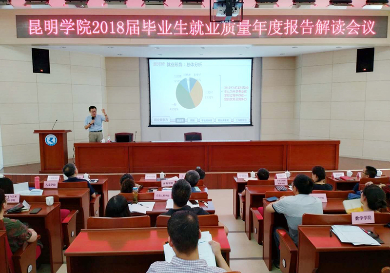 会上,张景岫执行院长就永利官网2018年就业质量报告做解读。张院长从主客观两个方面对本次就业调研做解读,客观方面真实的反映学校毕业生的就业状况,主观方面通过毕业生回看四年来的培养过程,看看学生们对学校的培养有什么意见。就业报告从就业质量、薪酬水平、工作稳定性、就业职业等多个角度进行调研,对学校的培养目标设定和培养质量有很好的反馈。