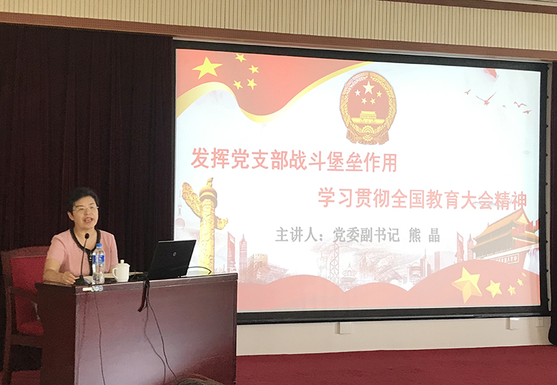 6月21日下午,学校党委副书记熊晶以“发挥党支部战斗堡垒作用 学习贯彻全国教育大会精神”为主题,为联系的体育学院、音乐舞蹈学院及机关组织人事党支部全体党员上专题党课。