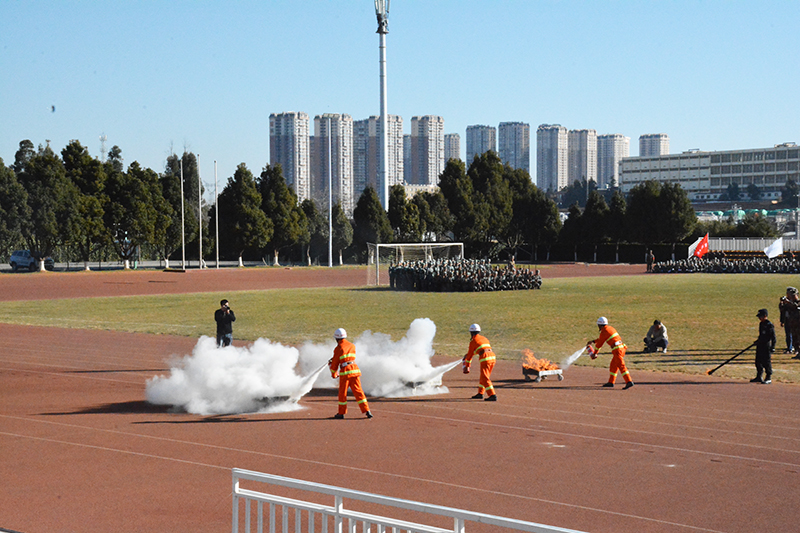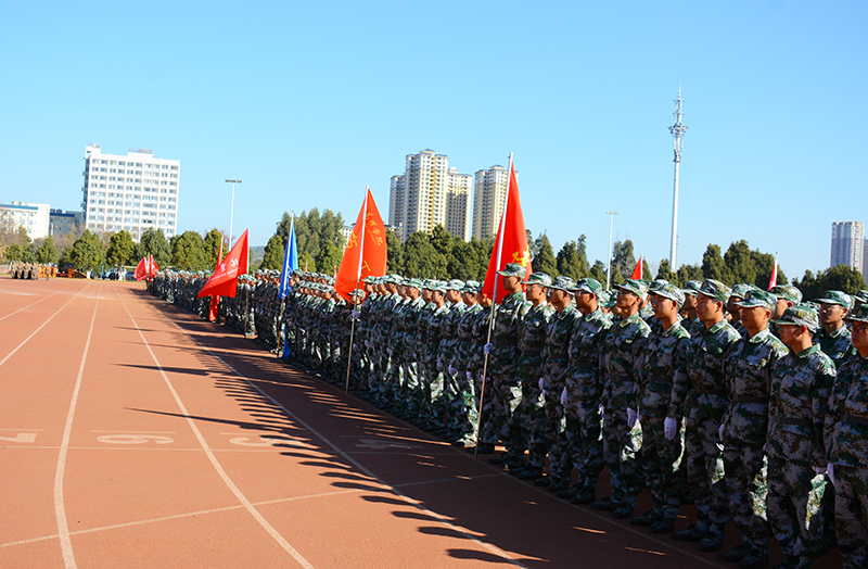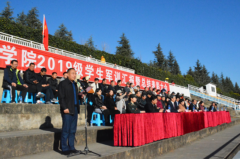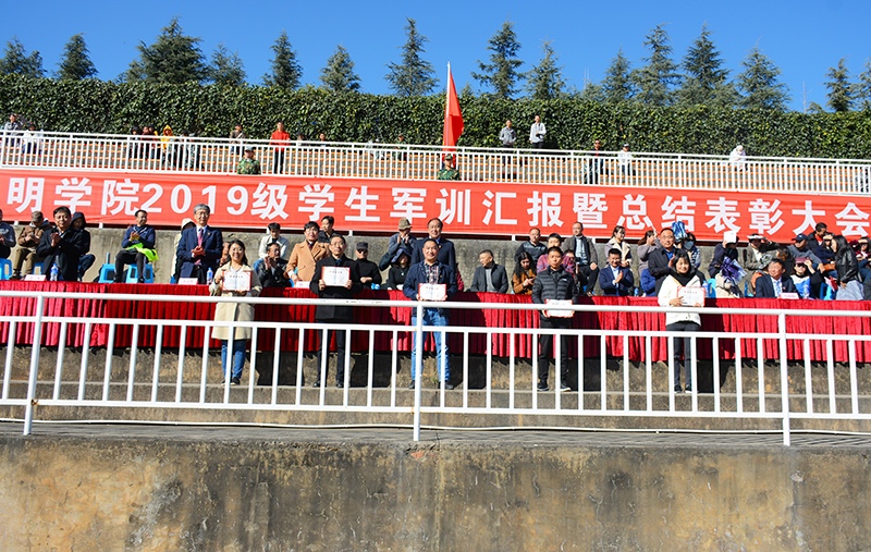 1月17日,永利官网在田径运动场举行2019级学生军训汇报表演暨总结表彰大会。学校党委书记陈永明,校长黎素梅,党委副书记熊晶,副校长郭华、马银海、沈凡、王凡,云南民族大学人民武装学院院长普卫明、副院长魏琳等领导出席大会。大会由郭华副校长主持。