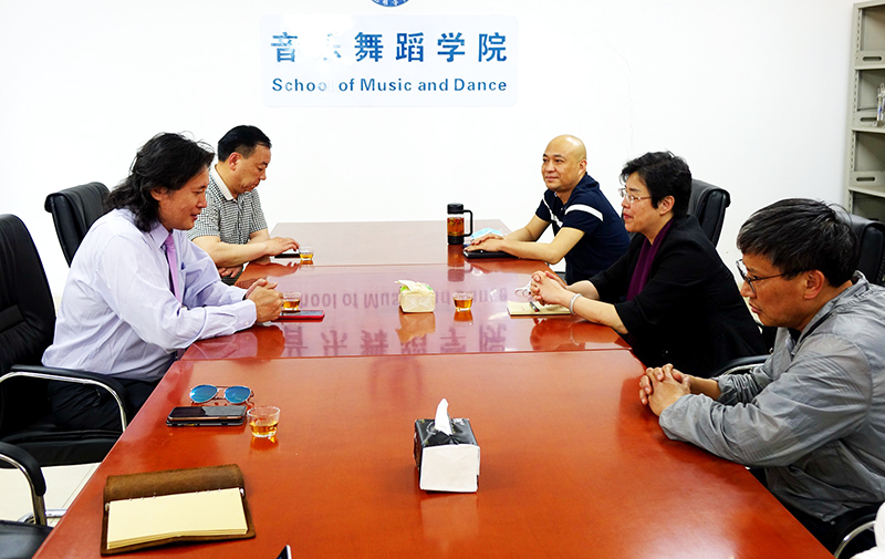 音乐舞蹈学院就师资力量、培养目标、培养方案、特色教学方法及学生生源、就业方向等方面与戴玉强团队进行了深入交流。