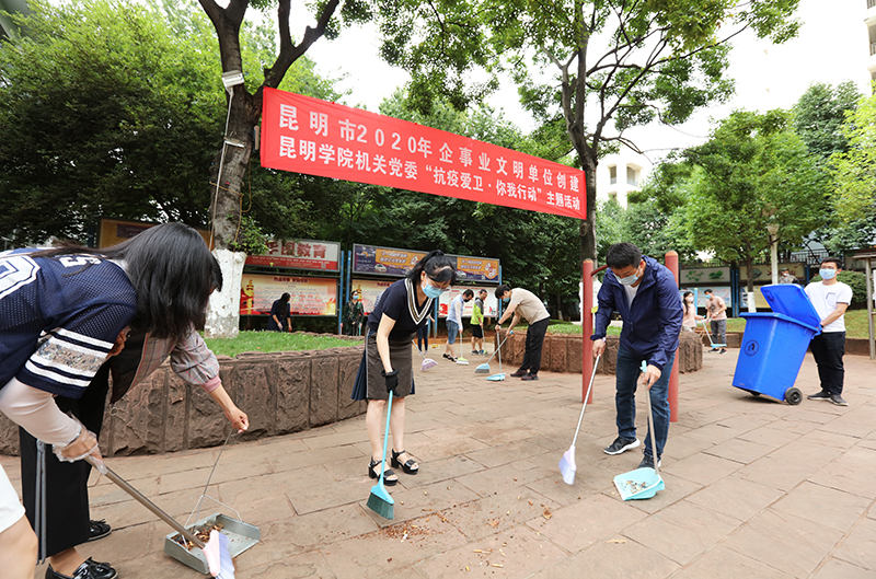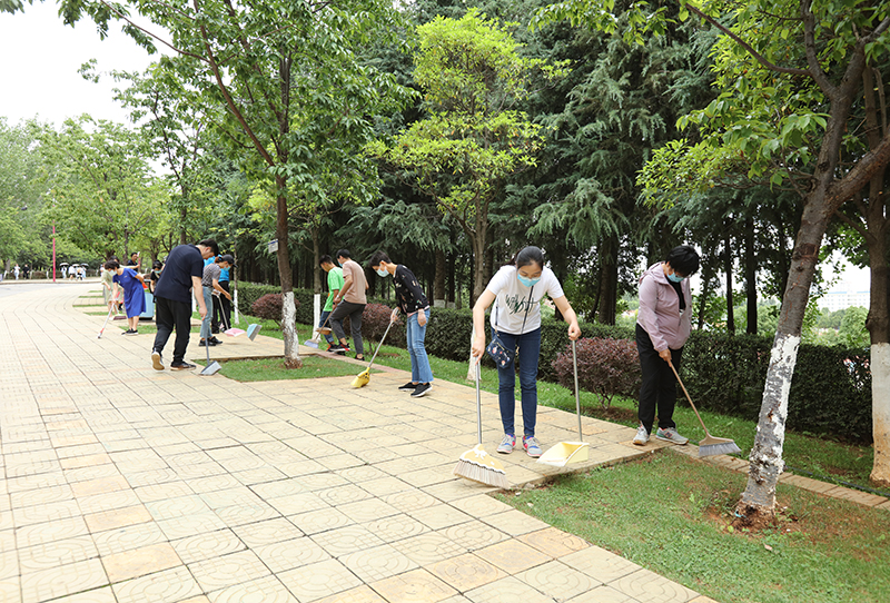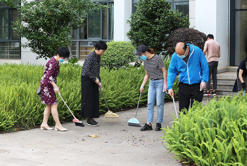 6月17日,学校机关党委组织广大党员干部开展“抗疫爱卫 你我行动”主题活动,发挥党员先锋模范作用,力行创建全国文明校园。