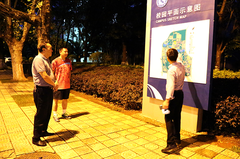 9月11日晚,学校党委书记陈永明带领党委宣传部(创文办)相关人员和干部夜间值班人员督导检查创文工作,对持续巩固提升文明校园、文明城市创建成果工作提出要求。