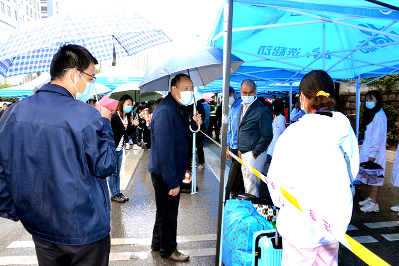 在疫情防控常态化下,新生入学秩序井然,不失圆梦大学的激动心情。为保障新生方便、快捷地完成报到手续,学校周密安排,精心准备,制定了新生报到接待工作方案,拟定了报到流程,安排了校园接驳车,组织了接待志愿者┄┄陆续到校的新同学们,在志愿者的热情引导下,来到所在学院报到处测温、消毒、查检录取通知书、进行“一书一表”盖章登记、办理入学手续、乘车入住┄┄整个流程方便快捷,安全有序。