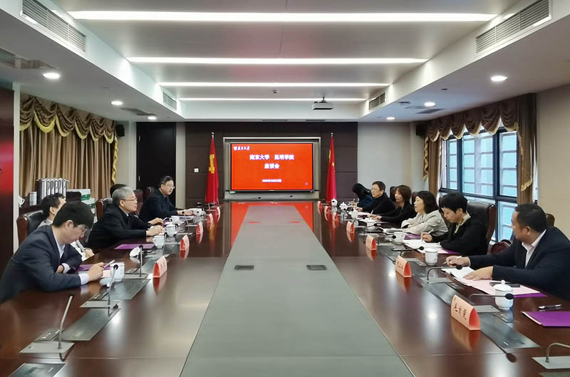当天上午10:00,双方在南京大学仙林校区行政南楼212会议进行了交流座谈。全国人大常委会委员、中国科学院院士、南京大学校长吕建,南京大学党委常委、副校长邹亚军,南京大学校长办公室主任、法制办公室主任尹三洪,南京大学创新创业与成果转化工作办公室主任、国内合作办公室主任高新房,南京大学校长办公室副主任陈进参加座谈交流,会议由邹亚军主持。