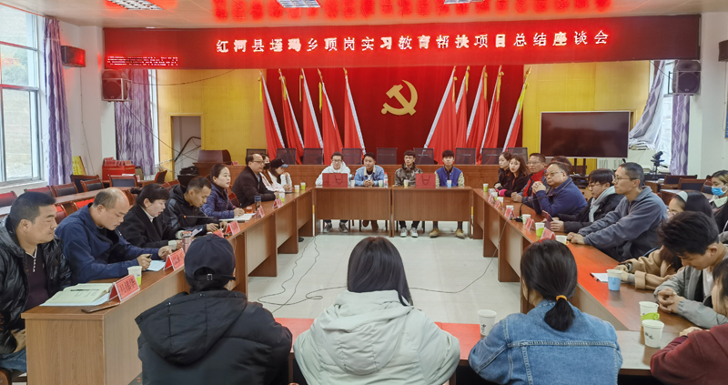 2020年12月31日,3044am永利官网红河县垤玛乡顶岗实习教育帮扶项目总结座谈会在红河县垤玛乡人民政府会议室召开。会议对2020年9月22日—12月30日期间3044am永利官网赴红河县垤玛乡开展顶岗实习教育帮扶项目的20名师范实习生实习情况作总结。