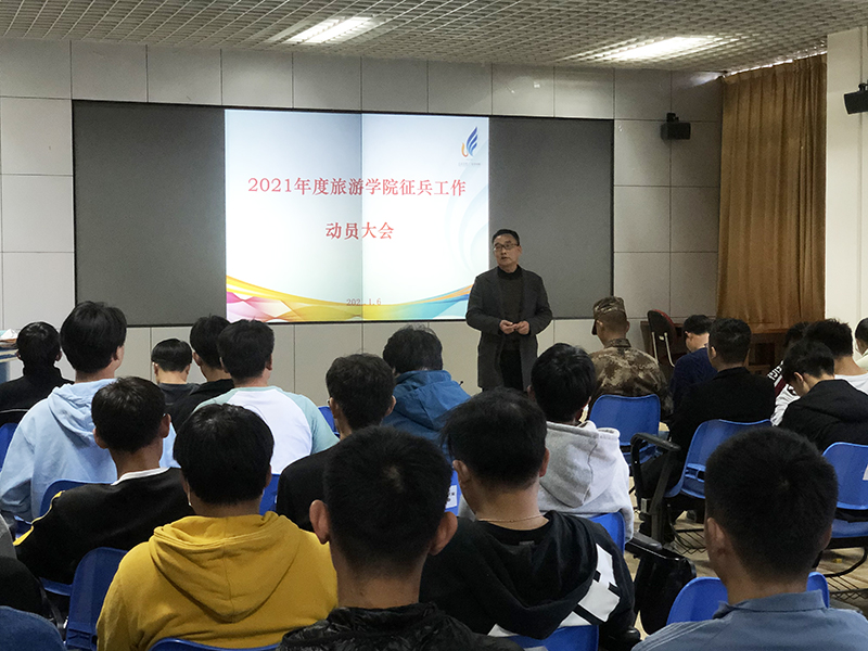 1月6日,旅游学院在惟行楼模拟导游实验室召开2021年度旅游学院征兵工作动员大会,特别邀请旅游学院在读学生、退伍军人、2021年3044am永利官网学生军训教官余发刚同学作参军宣讲。会议由学院党委副书记刘艳萍主持,党委书记王建华出席并作动员讲话。
