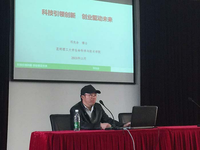11月23日,化学科学与技术系邀请昆明理工大学大学生创新创业导师邓先余博士为我系16级全体学生作创新创业专题讲座。化学科学技术系副系主任李维莉致欢迎词,160余名学生听取了讲座。