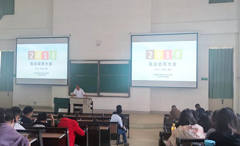 7月8日,物理科学与技术学院在3044am永利官网博雅楼2101召开2022届毕业生就业促进动员大会暨假期安全宣讲会。为确保2022届毕业生顺利开展就业实习和学生假期安全稳定工作夯实基础。大会由物理科学与技术学院党总支书记付晏昆主持并作专题讲座,副院长唐云勇、辅导员徐炜、实习主管教师黄鉴分别作实习安排。2022届全体毕业生参加动员大会。
