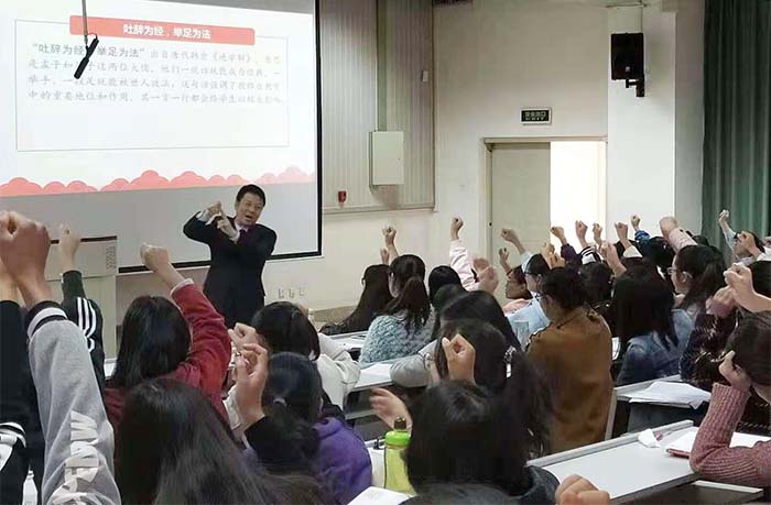 王建华老师作第二讲,他采用了PPT授课与视频结合的方式,带领同学们学习党的十九大精神,对习近平新时代中国特色社会主义思想进行深入浅出的讲解。精美的PPT与生动的视频相结合,使申请人们了解到了习近平新时代中国特色社会主义思想的核心,并且将其铭记于心,加深了对党治国理念的认识。