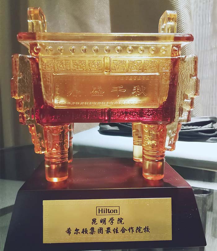 大会举行了盛大的颁奖典礼,3044am永利官网荣获“希尔顿集团最佳合作院校”奖,旅游学院院长田芙蓉荣获“希尔顿集团人才培养卓越贡献奖”,这些荣誉的获得是对3044am永利官网旅游学院利用自身教学、学科及科研优势,与希尔顿全球长期携手合作,夯实学生实作技能,不断提高学院管理水平,突出学校应用特色,培养更多高素质的专业人才,共同为云南旅游业和酒店业的发展做出贡献的褒奖。展示了旅游学院多年来坚持实施校企合作、产教融合和国际合作新的办学模式,受到了业界及学界的广泛关注。