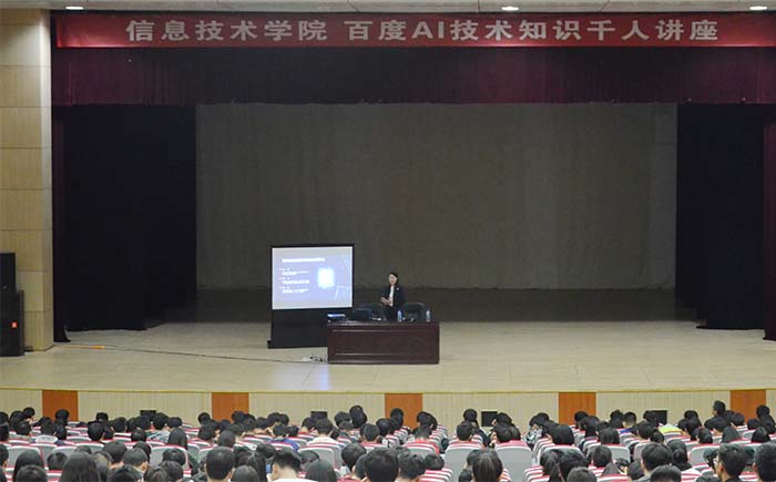 11月7日,为了提高信息技术学院学子对人工智能AI技术的了解,信息技术学院在学生会堂开展了以“人工智能技术正在改变世界”为主题的百度AI技术知识千人讲座,百度校园品牌部主任李轩涯,工业和信息化部人才交流中心、蓝桥杯大赛组委会王天宇,信息技术学院书记陶军、院长刘渝妍应邀参加讲座,信息技术学院全体学生和自机学院部分同学聆听了讲座。