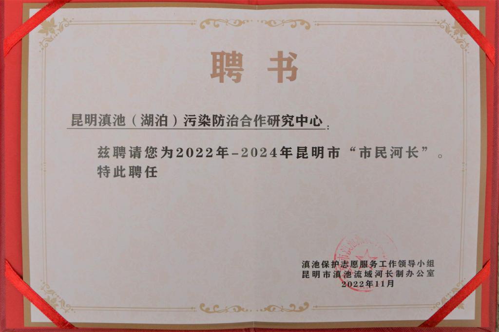 2022年7月,昆明市滇池流域河长办启动了2022-2024年度滇池流域市民河长招募工作。滇合中心积极响应,认真申报,成功入选。今后,滇合中心将根据《昆明市滇池流域“市民河长”管理办法》的要求,认真履行“市民河长”职责,继续积极投入滇池保护治理和生态文明建设,践行高校服务地方职责职能。